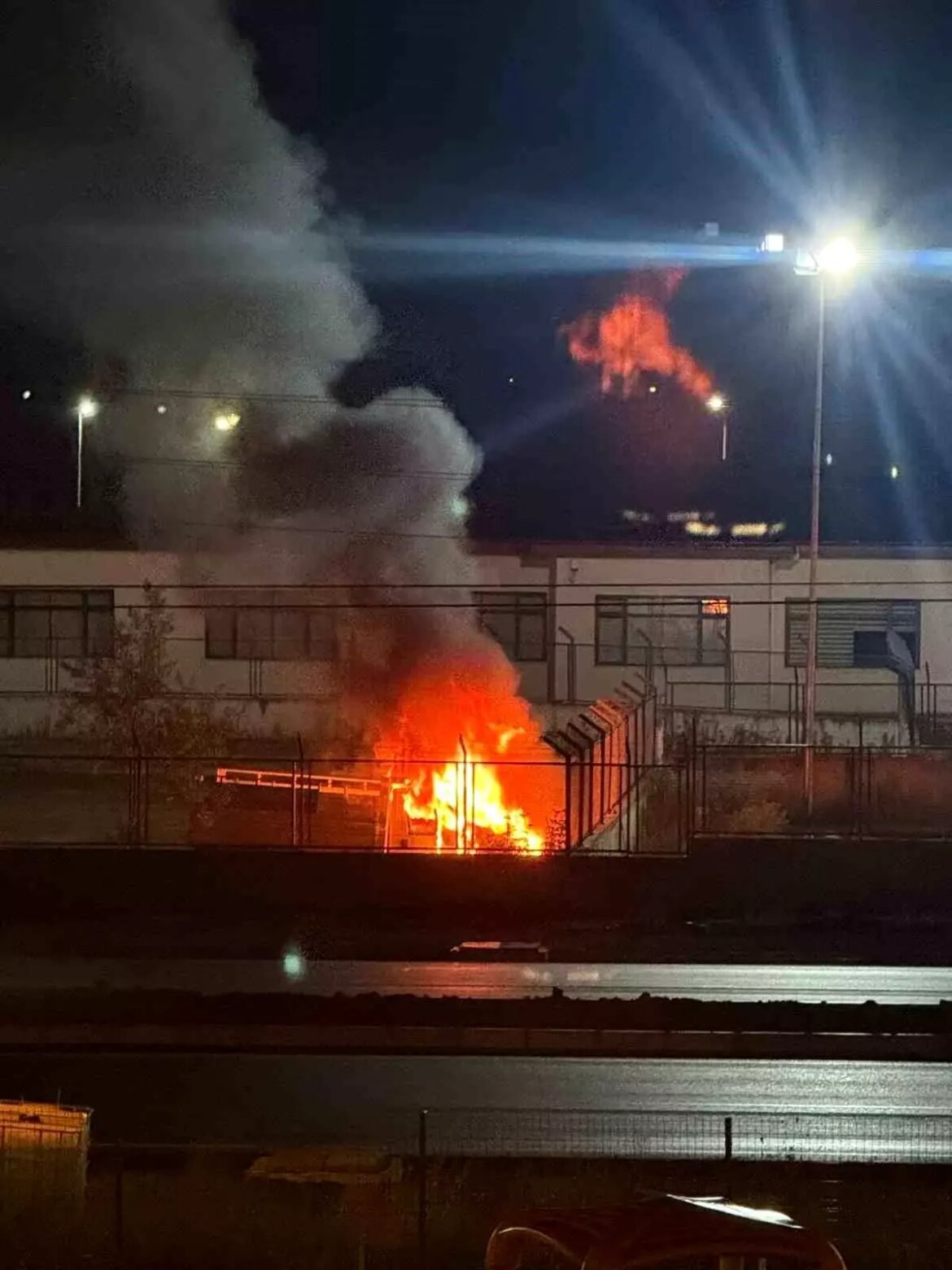 Samsun’un Çarşamba Cezaevi bahçesinde park halinde bulunan kamyonet, şimdi bilinmeyen bir nedenle alevlere teslim oldu.