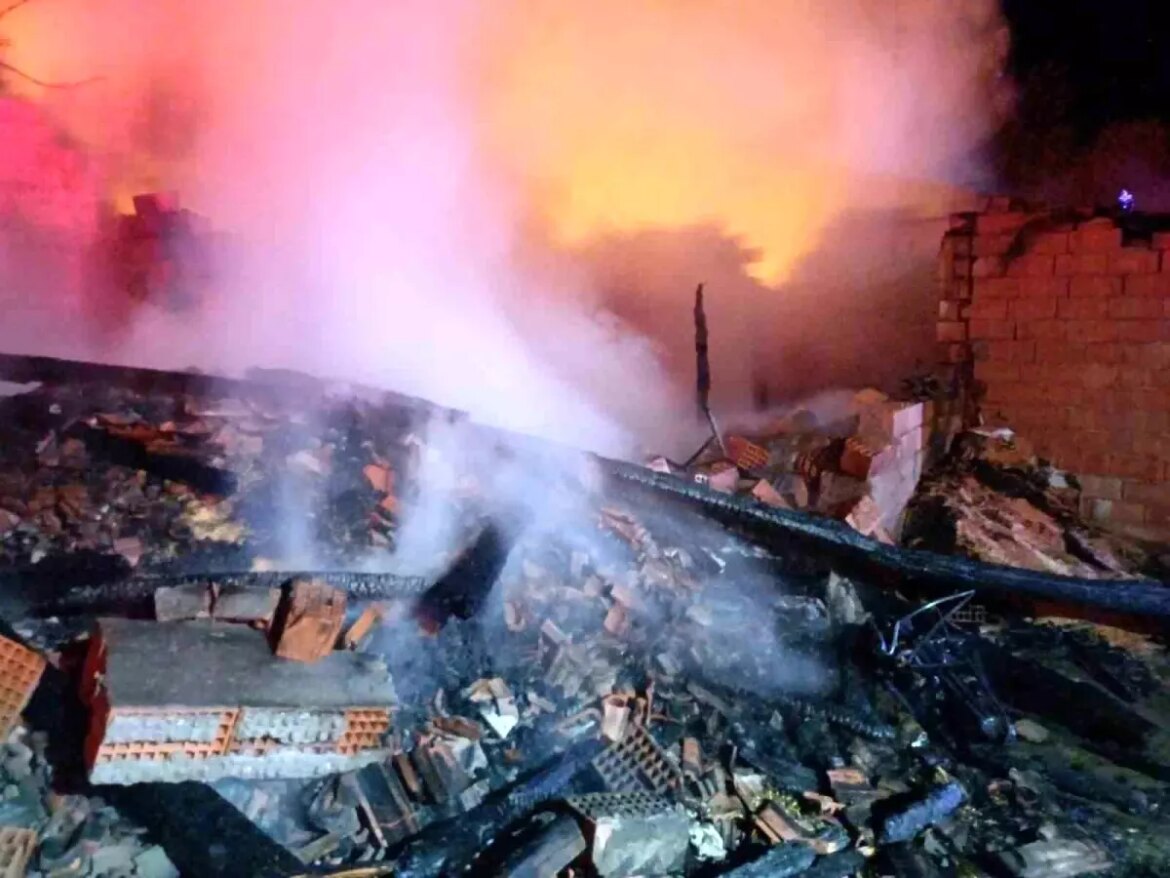 Çorum’un Alaca ilçesinde alevlere teslim olan ahır ile ardiyedeki 70 torba yem, 1 ton nohut, 5 ton arpa, 3 ton buğday ziyan gördü.